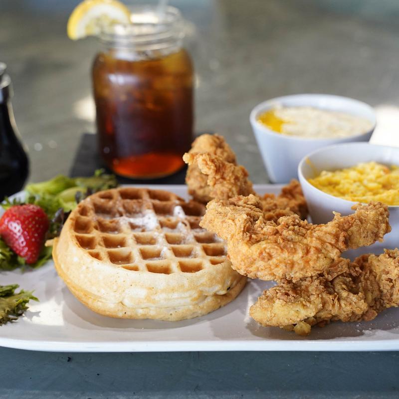 This sweet and crispy entrée is just what you are craving! Our fresh house-made waffles topped with our Southern fried chicken wings, strips, or breast. Drizzled with real maple syrup.